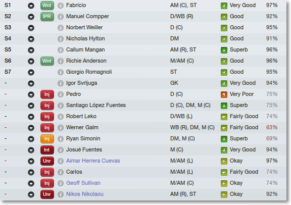 Yes I have spent a lot of money this season, but I did mention needing more strength in depth and below is one of the reasons…come January we had a long list of casualties and players away on International duty. Besides, my backup CM’s just weren’t good enough.