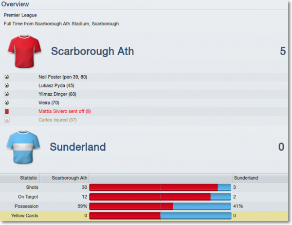 I honestly couldn’t have asked more from my players, we had a sending off after 9 minutes, then lost star left winger Carlos to injury just 37 minutes in. All was going wrong but then from nowhere we gained a penalty and Foster converted with a lethal strike. It was all Seadogs from there as we ran out 5-0 victors…I told the lads they were brilliant and then nervously waited after clicking continue…