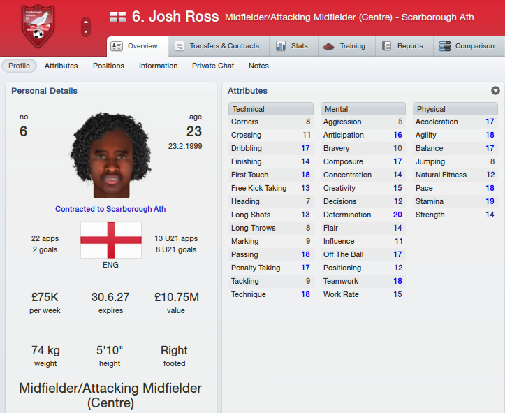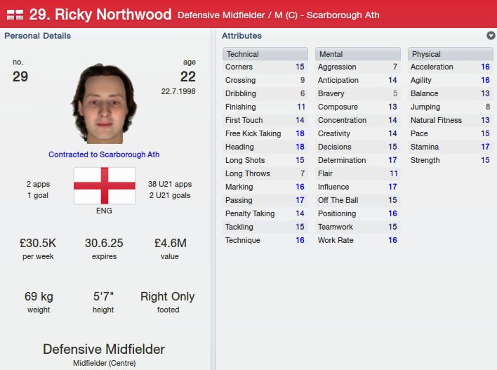 I had almost given up searching for talent, the main area I wanted to strengthen was central midfield as I required more depth (you’ll see why soon.) Then my scout provided a report on Arsenal’s Ricky Northwood who I tried to sign in the summer when the player wasn’t interested in a move up North. Well now he had done a U-turn and completed the £5 million switch, an excellent coup that brought our winter transfers up to the £13 million mark.