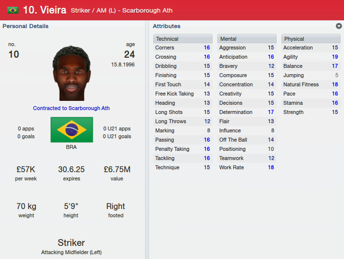 Now for your favorite part of the season, my summer signings. Almost every area of my squad was strengthened and most of these signings would become rotational players at least. The best of my signings came in defense with new centre back Timo Finke and upfront with my new 24 year old prolific Brazilian striker Vieira. (Both players profiles can be seen by clicking their names.) My summer spending hit an all time high of £35 million meaning a net spend of £23.25 million.