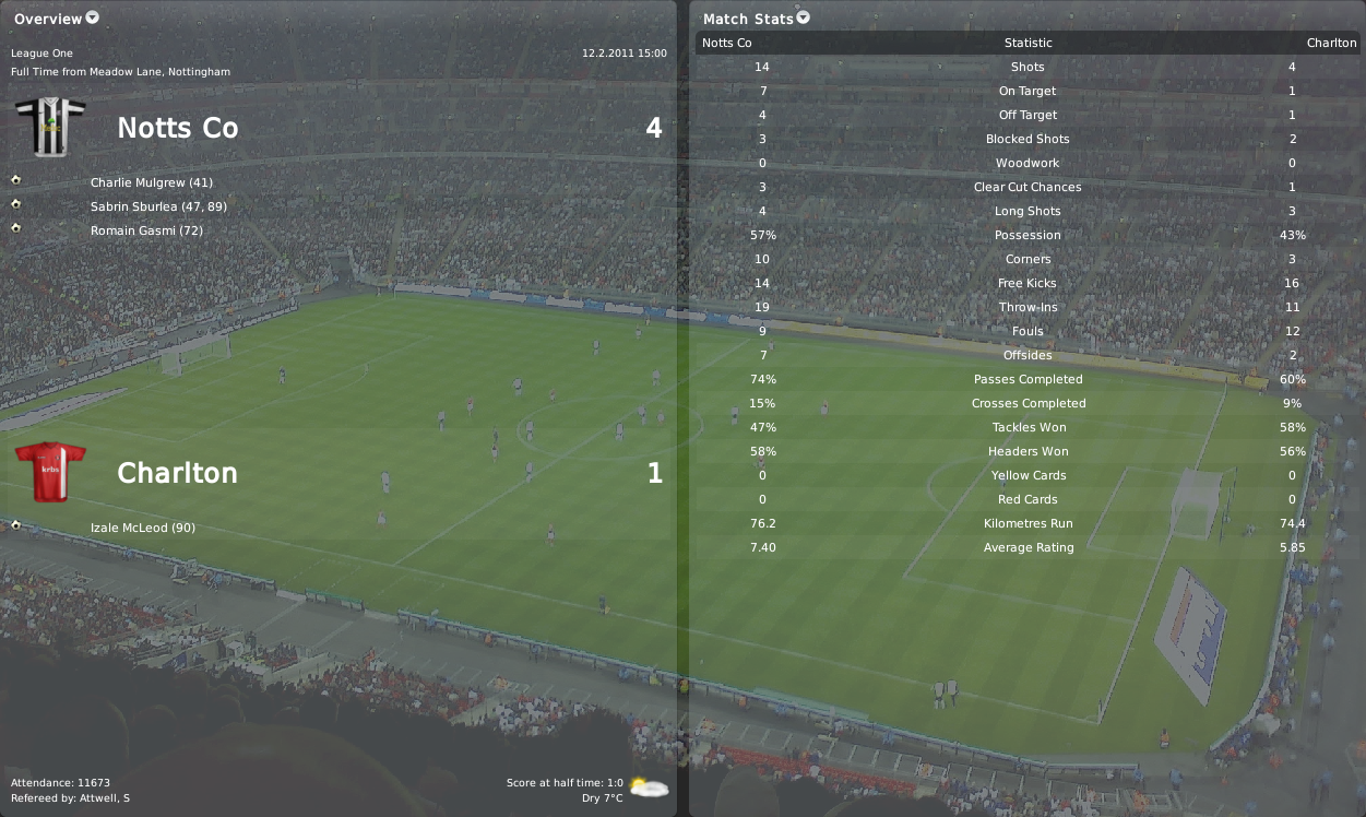But there still were a lot of games to be played until then, we had to keep a good pace in League One and gain promotion to Championship as soon as possible. The first game of the month was away at 14th placed Norwich, we defeated them 2-0 at Meadow Lane in September. Things went very well again, centre backs Muniesa and De Laet made it 2-0 with powerful headers from corner kicks and winger Pedro Botelho scored a goal on his debut with a superb left footed drive from the edge of the area. Sburlea came in for injured Pekhart and scored a double for us in the second half, quite pleasing :)