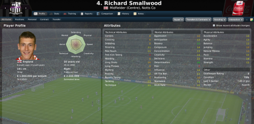 I brought quite a few central midfielders, I need good depth in that department. The best of the new lads is Richard Smallwood from Middlesbrough, although he’s very young he has some experience in Coca-Cola Championship.