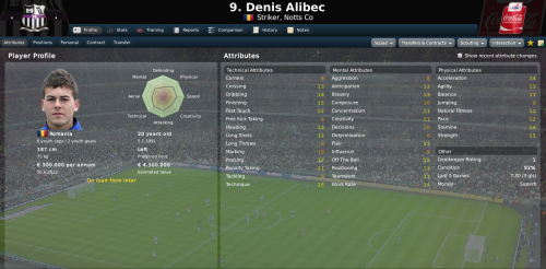 I didn’t feel that we needed a new striker but I thought that I could bring one on loan just in case. The one that I chose is Romanian youngster Denis Alibec from Internazionale Milano, they agreed to loan him for free.