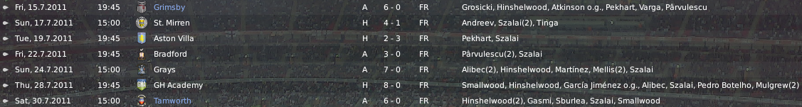 The friendly games went pretty well, we won most of them by scoring lots of goals. The only defeat was at the hands of Aston Villa but we had a good chance of getting a draw in that game, Aston Villa scored the winning goal in the last minute.