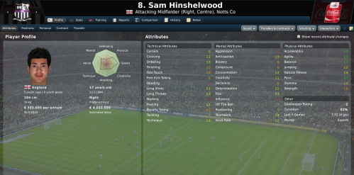 The most expensive transfer was right winger Sam Hinshelwood, a 17 year old English regen. His team, Portsmouth, just got relegated from the Premier League so they had financial problems, otherwise they wouldn’t have agreed to sell him. He is a huge prospect and I will give him the chance to play in the first team, I really believe that he will become a big hit.