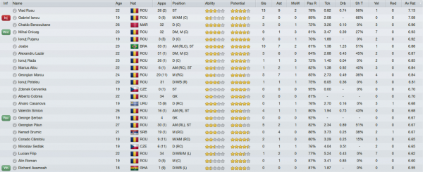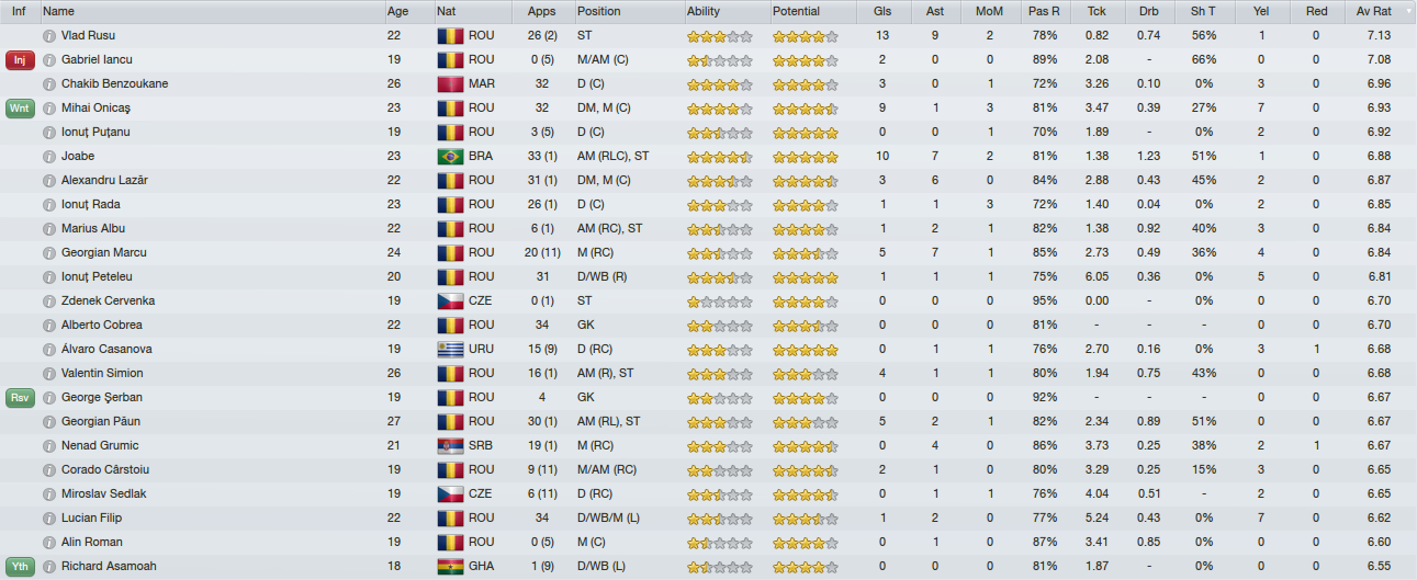 The player stats are not too impressive, I think that Vlad Rusu, Mihai Onicas and Chakib Benzoukane kept this team on their shoulders throughout the season. My goalkeepers were disappointing and my strikers didn’t do much better either so those two areas will probably need the most amount of work during pre-season.