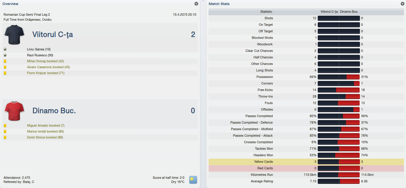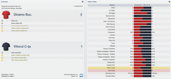 That league defeat was quite painful especially since it was the second time that Dinamo had beaten us in just two weeks. Fortunately we had the chance to get revenge right away, my players had to win the second leg of the cup semi final if they wanted to restore some of the lost pride.