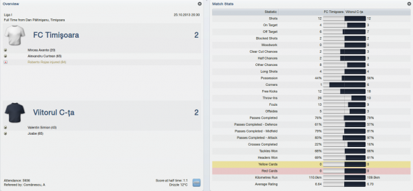 The next game was going to be a lot tougher as we were going to visit strong FC Timisoara, the team that was leading the Liga 1 table at the end of September.