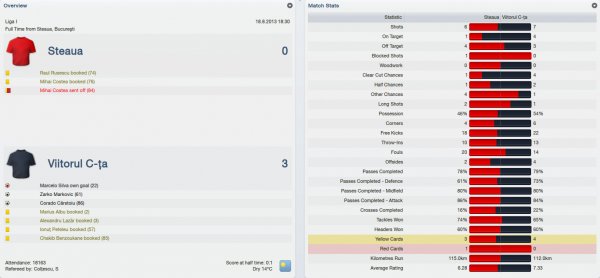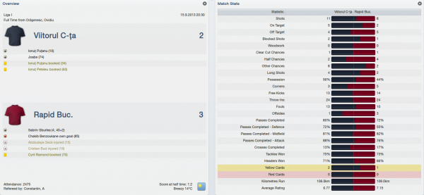 After such a delightful opening month it was hard to keep the players with their feet on the ground. They were enthusiastic but I knew that a defeat was bound to come sooner or later. Needless to say I was hoping for later… The first match of September saw us receiving the visit of strong 8th placed Rapid Bucharest, one of the biggest clubs in the country.