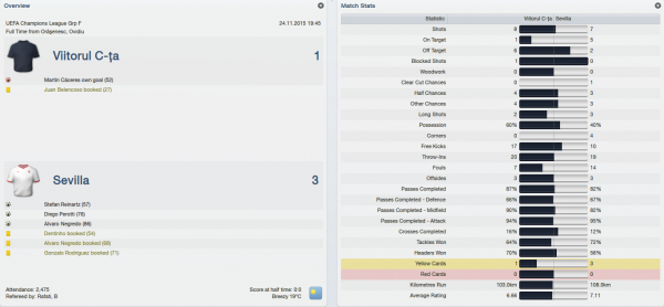 The start of the second half was way more pleasing for us as we took the lead on 52 minutes when defender Martin Caceres put one past his own keeper as a result of our pressing. But our joy was short-lived, we defending with clumsiness on a free kick cross after just five minutes and Sevilla pulled level. Then we let in an even stupider goal, my defence was surprised by a long goal kick… And that was that, we lost it 3-1 and our dream of finishing 3rd was over and done.