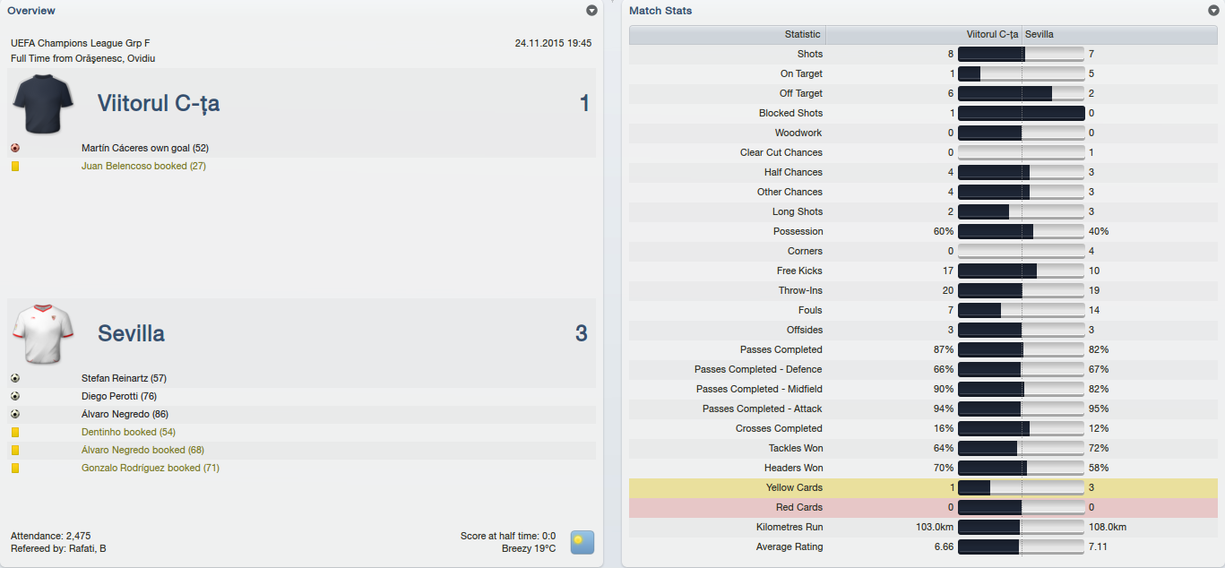 Well I’m happy to see Vittorul sitting at the top of the Romanian league despite having some injury concerns along the way. Tough luck in the Champions League yet again though I’m sure you will figure out how to progress at some point. Good luck!