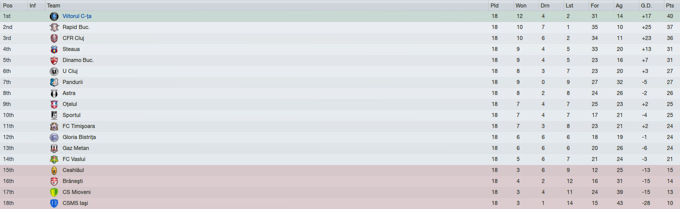 We are top of the table before the winter break and I guess we’ll have to battle it out against our usual rivals, Rapid Bucharest, who sit just three points behind us.