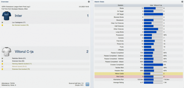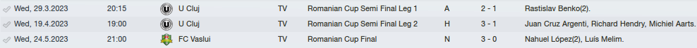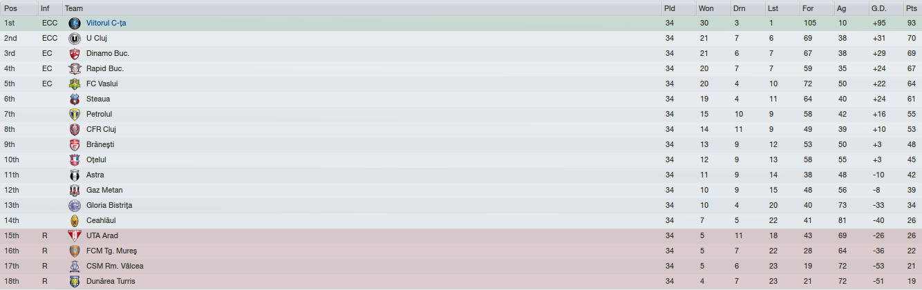 The Romanian League went smoothly as well, even though we dropped some points due to the rather wild squad rotation I implemented in order to keep the important players fit for the Champions League battles.