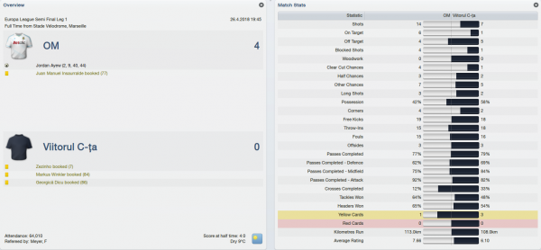 Well done on winning the Europa League final! I had a weird knockout stage in my game against Marseille too. Vitesse (who I play as) lost 4-0 in the first leg, yet somehow won 7-2 in the home fixture. Unfortunately we drew Barcelona in the next round….