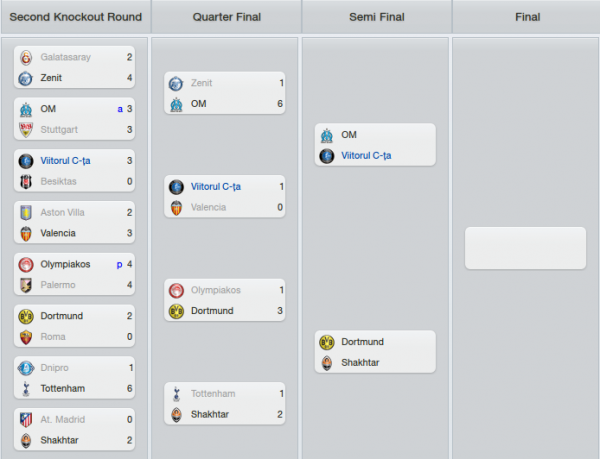 I would have preferred to meet Olympiakos in the quarter final but we got Valencia instead, not an easy opponent at all. But it could have been worse I guess, Tottenham or Marseille for instance :)