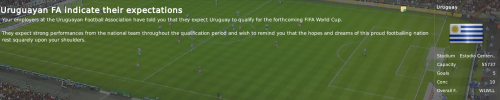 Hello my friends! I wish to express my gratitude again for the wonderful display of enthusiasm that you showed on my last post, I am extremely happy to have such an active and helpful audience. As you already know I decided to accept the Uruguay job offer, I will manage both Notts County and the Uruguayan national team for a while, that is until they will sack me :)