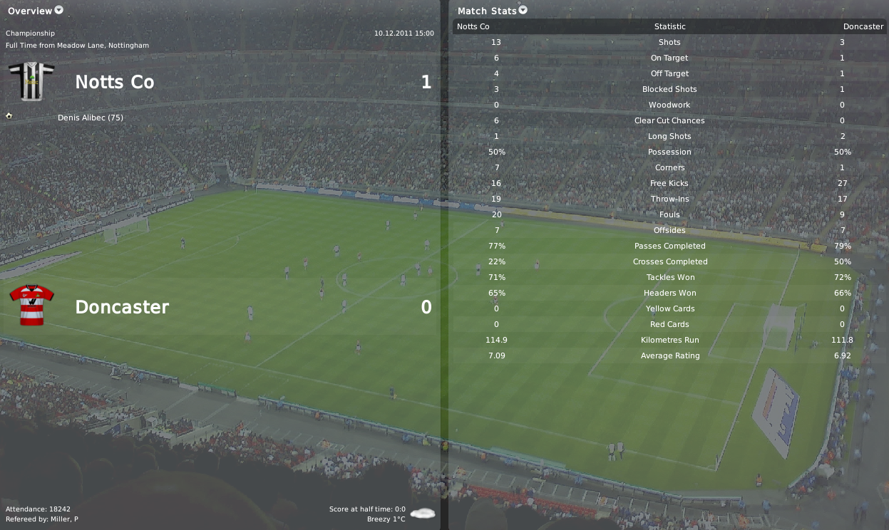 Hello my dear friends, welcome back to my Football Manager 2010 story. Things were looking good for my Notts County at the end of November, despite having the first defeat of the season we were still top of the table. If you remember I complained about the pitch at Meadow Lane in the previous post, Kevin described it pretty well: «a mud bath». I contacted the board and requested them to relay the pitch, the situation was outrageous.