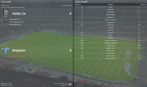 We had to wake up and forget the Cardiff nightmare, 22nd placed Brighton were coming at Meadow Lane. It was a good chance for us to get back on track and we had luck on our side again. One of Brighton‘s defenders got sent off right away for a professional foul, Alibec was clean through on goal when he got fouled. With an one man advantage the game turned out to be quite easy, we put four goals past them with no real difficulty.