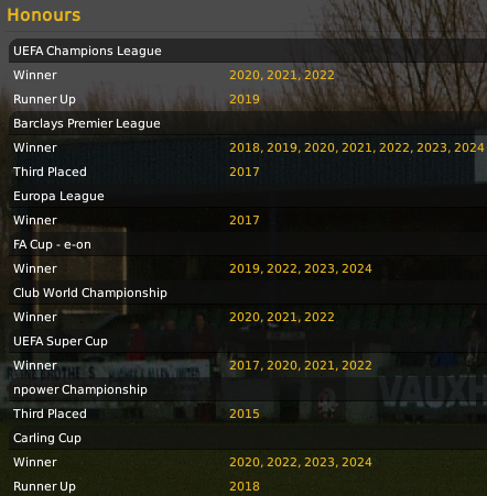 Now on to the Champions League, I was quite keen on winning it again after being knocked out in the semi finals last season. Things went smoothly again until the last four as we went past Sevilla and Juventus without major headaches. But then it happened again… The first leg of the semi final against Chelsea was immensely frustrating as we dominated the game from start to finish but the Blues survived the onslaught and silenced our fans with a late corner kick goal. The second leg was even more annoying as we didn’t play too well. Nevertheless, we managed to push the game into extra time but then it went to the penalty shoot-out and we lost it…