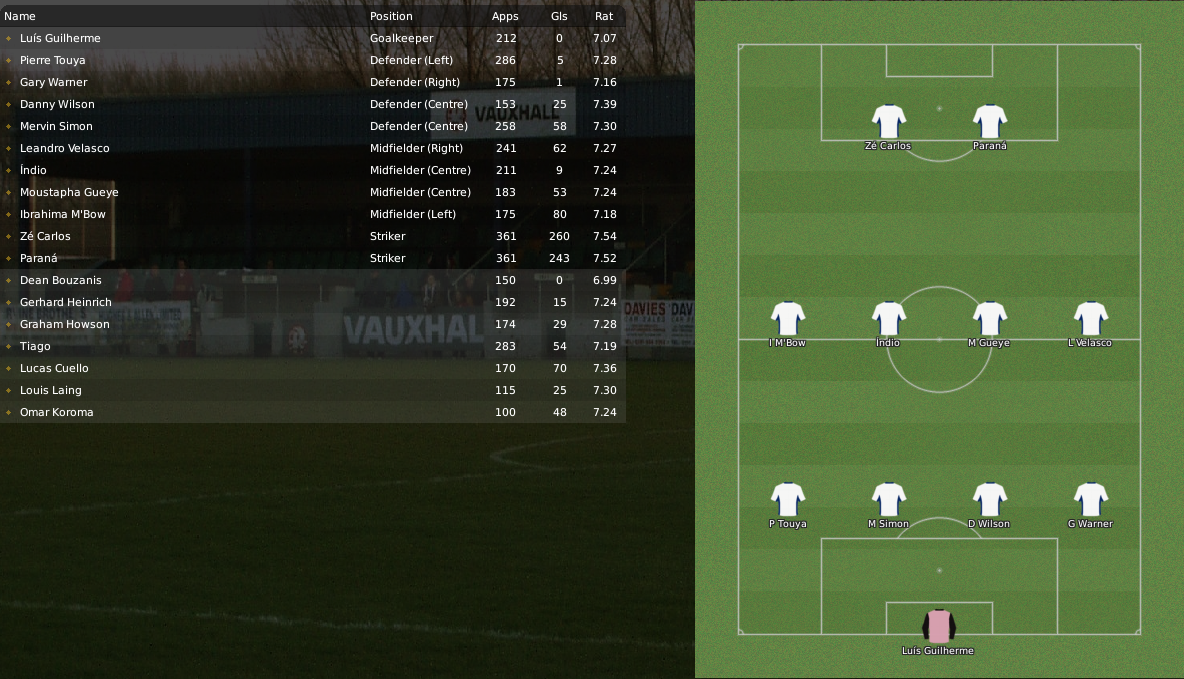 The overall club best eleven was presented to me at the end of the season, it’s in the shape of the 4-4-2 that I have used for quite a few seasons. As you can see there are quite a few former players in that best eleven, including people like Omar Koroma on the bench.